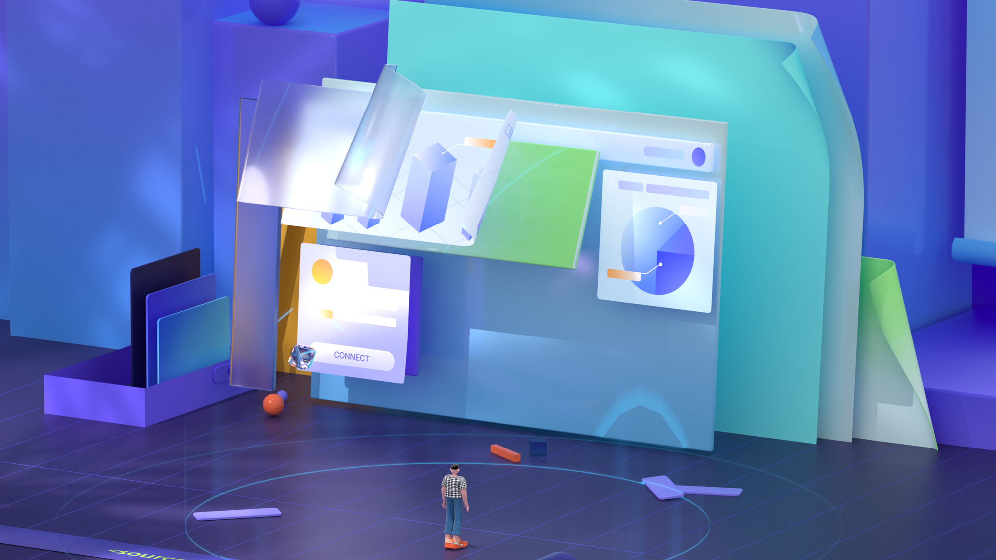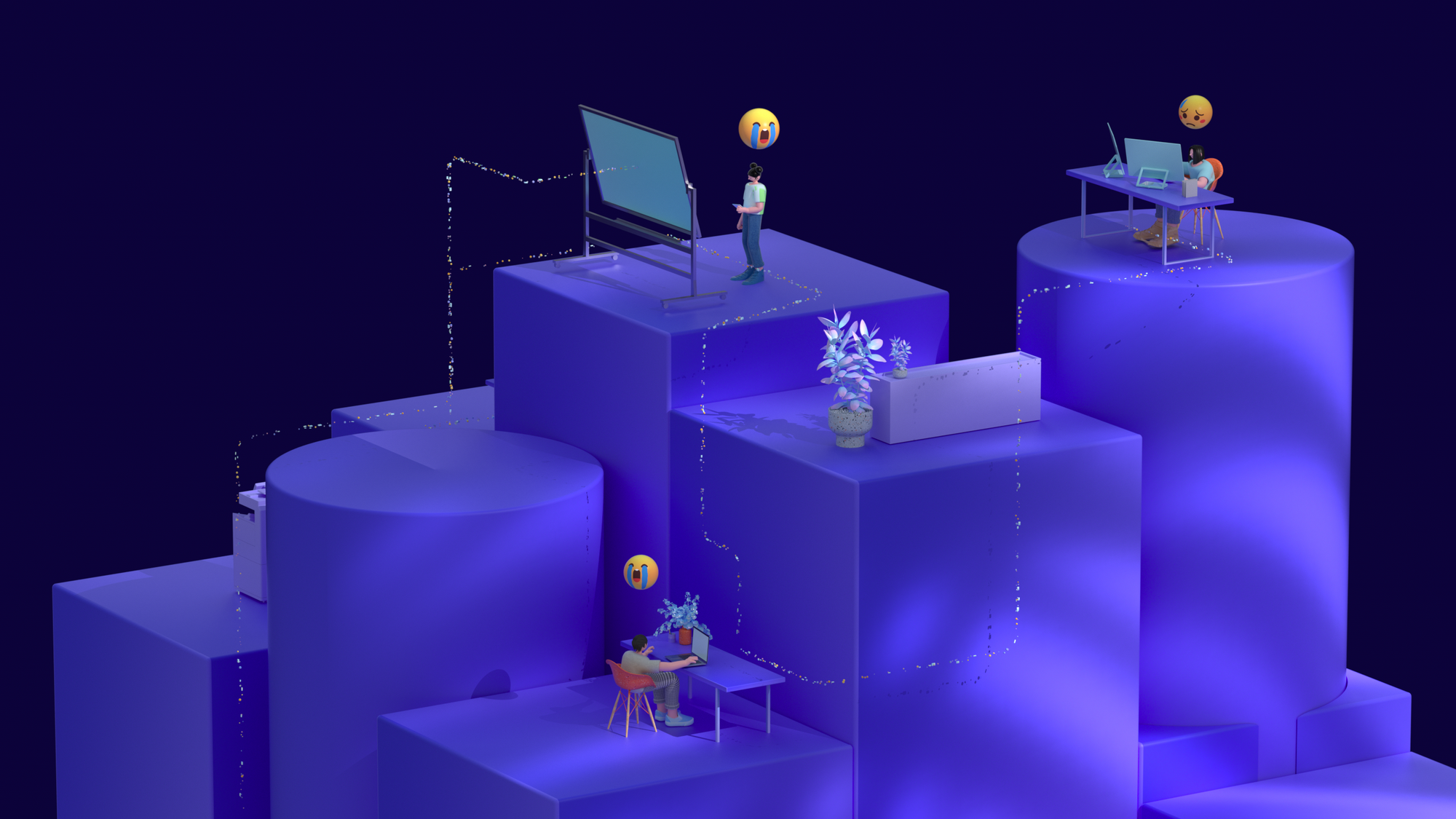 结合今年的主题与KV意向,延伸出传达内容。无代码的风潮,从星星点点的对个人的影响,开始越来越成气候,对小部门小团队产生积极影响;最后越来越完备的无代码平台更打通了部门协作,对整个巨大的组织也产生了积极影响。