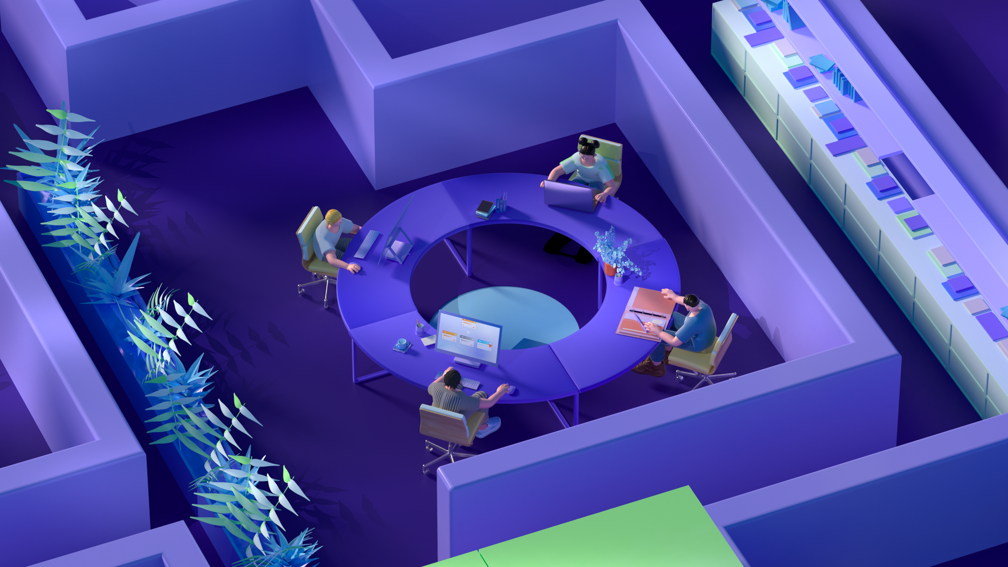 对更大的组织/大企业带来的变化:多个部门在迷宫中隔绝,通过棱锥的click,高墙被打破,组织得以重组,并高效的协同,人员自由地穿行。