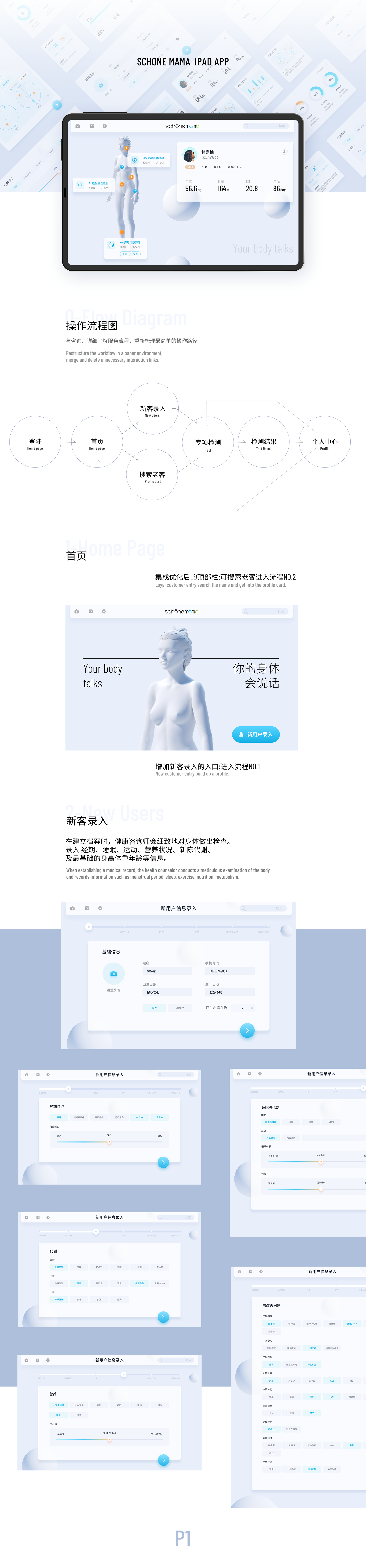 2022年6月我们有幸得到上海美丽妈妈的委托,为店内的顾客设计一款健康检测系统。经过一个多月的沟通探索、设计、测试、协作开发,在这次得到客户完全信任的设计旅程里,我们收获了很好的结果。