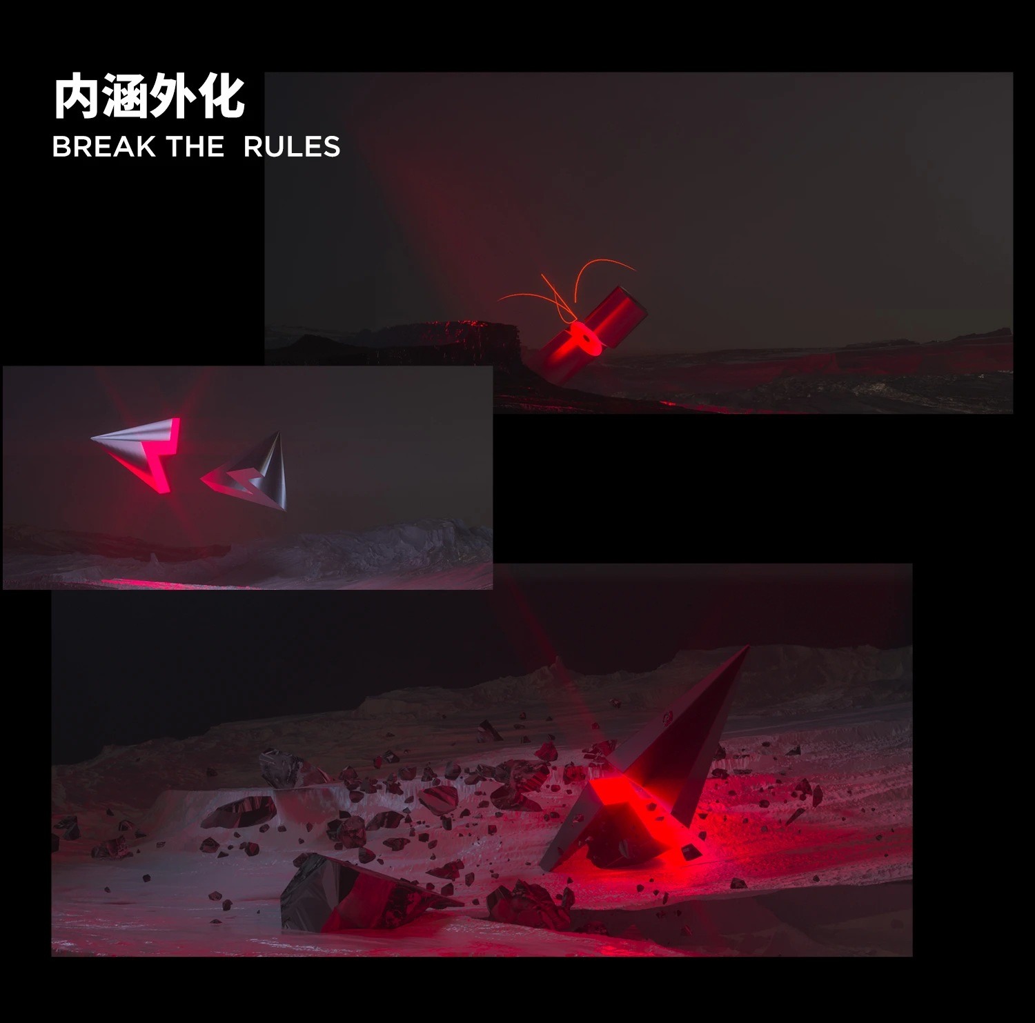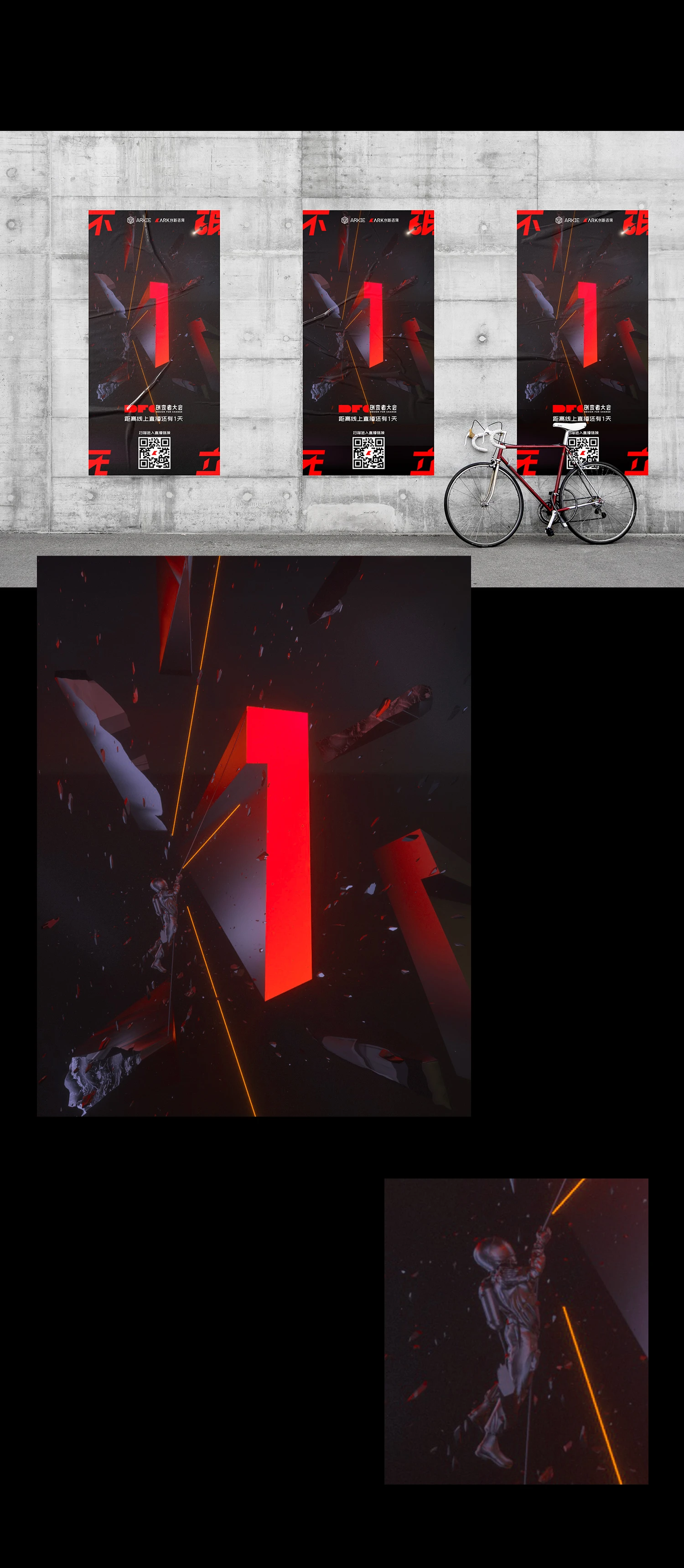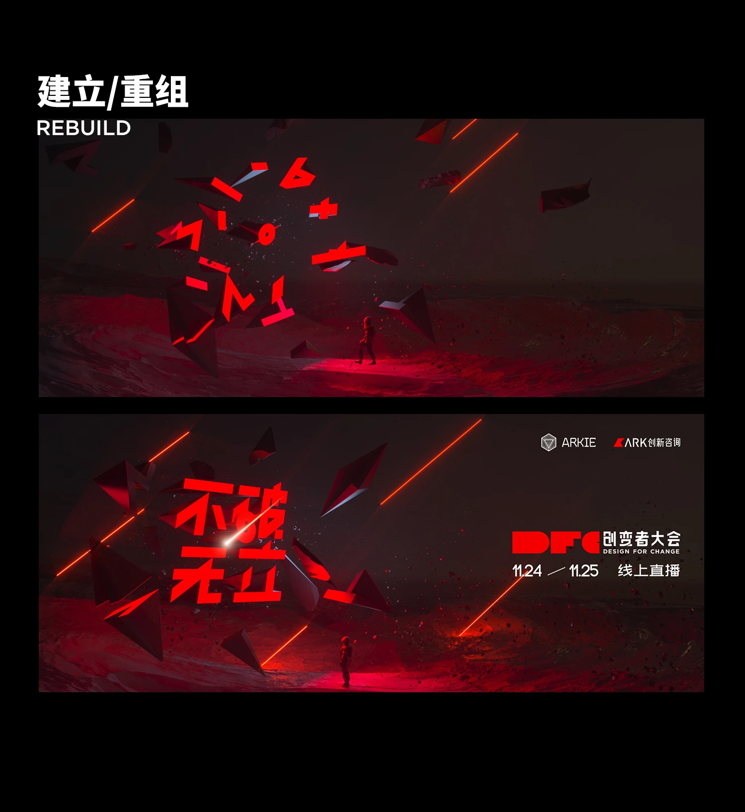 所有剖面组合成“不破无立”,犹如电影结尾,解开谜团同时点名主题,创变者在抬头仰望,是一种内心的感召在黑夜中发出火热的光,营造出肃穆孤寂又坚定的视觉冲击。