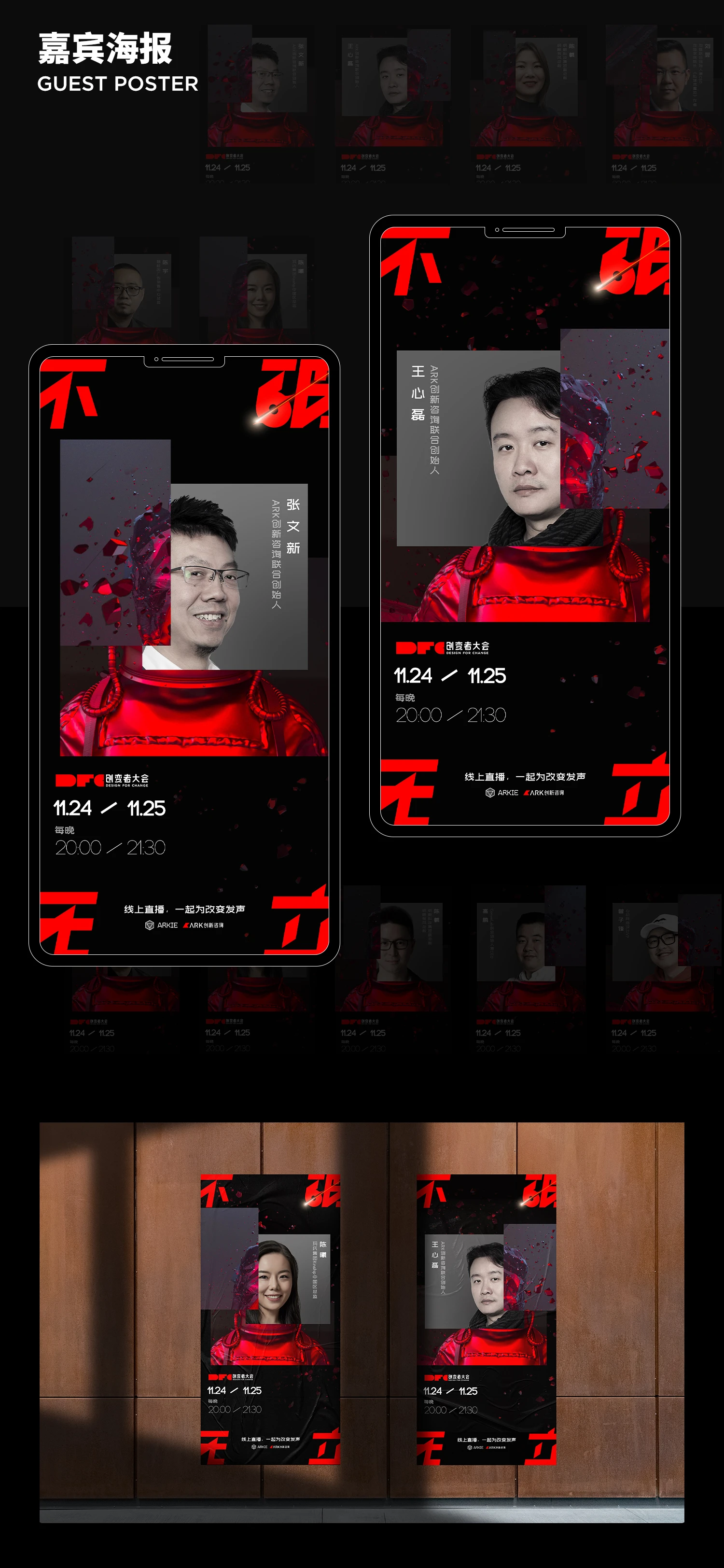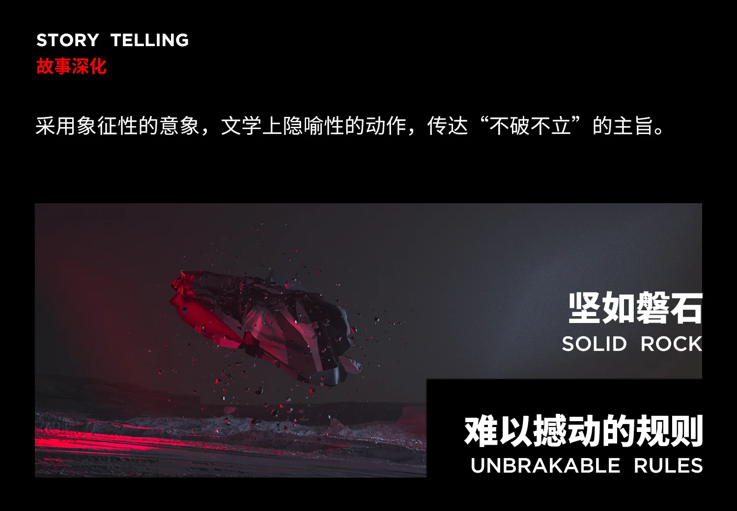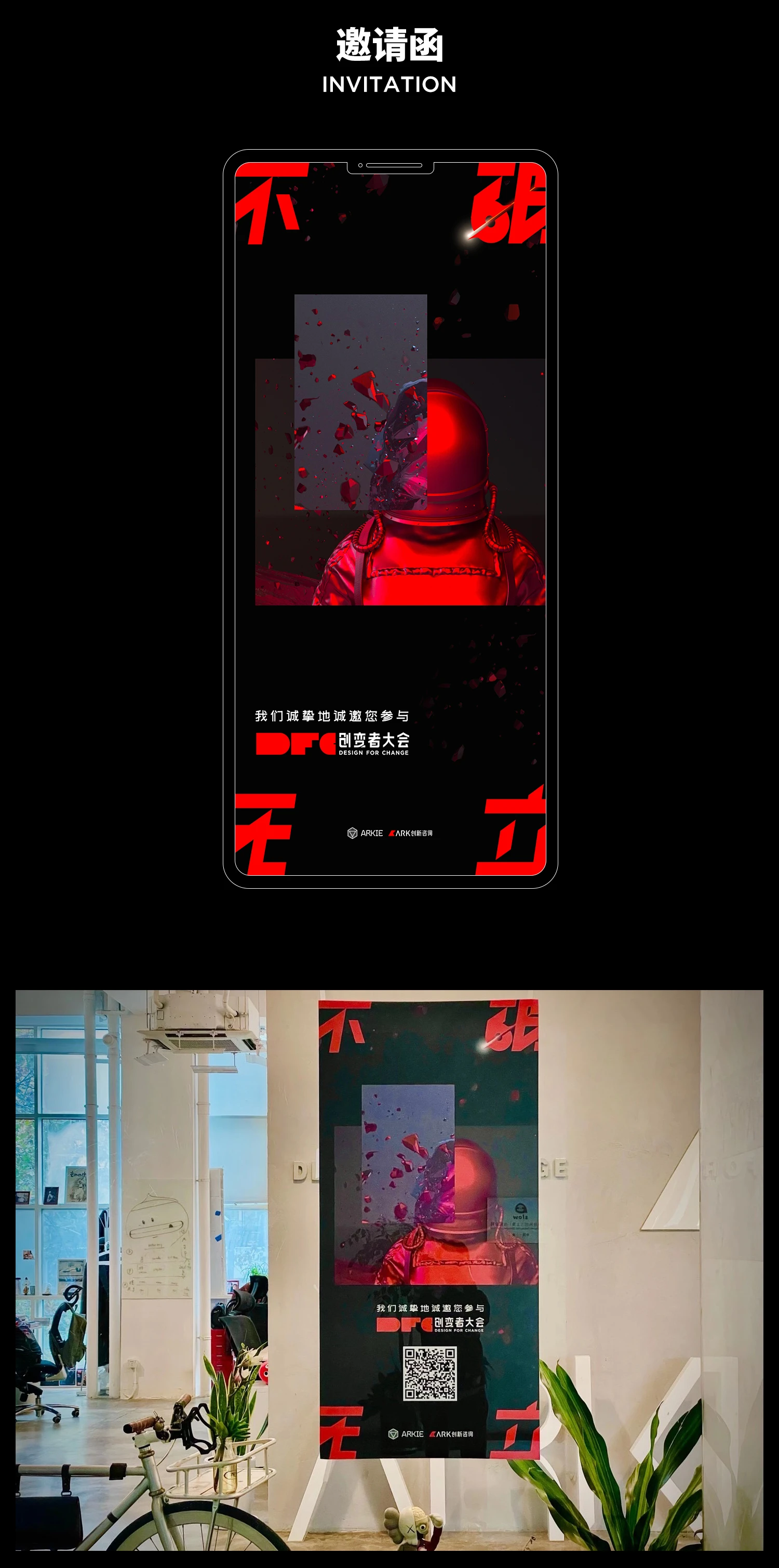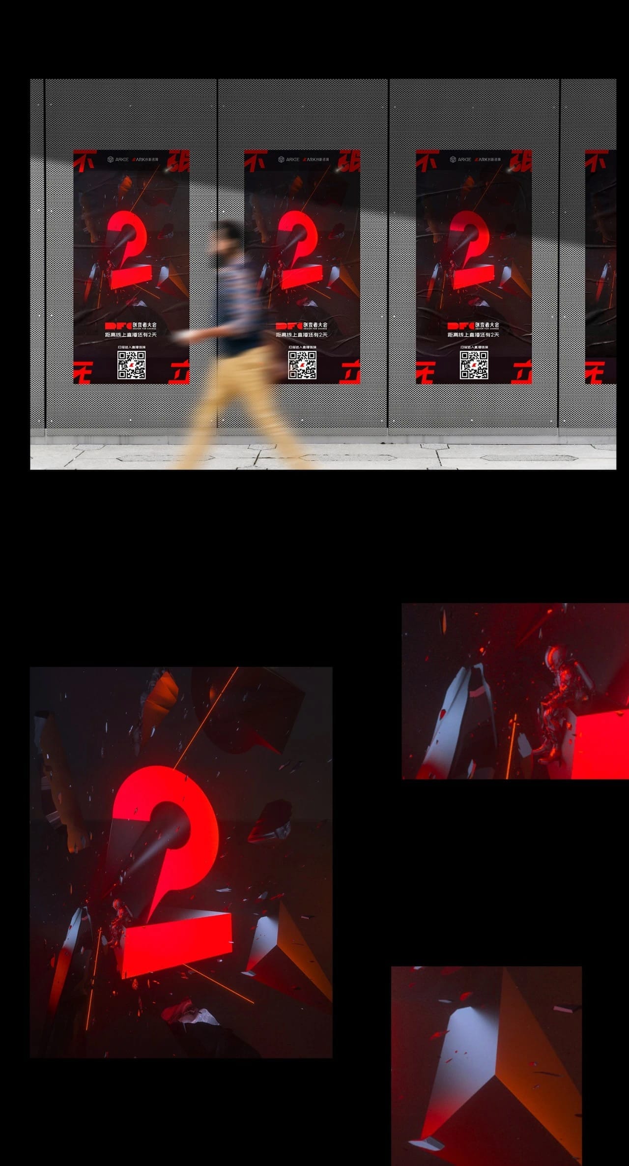 所有剖面组合成“不破无立”,犹如电影结尾,解开谜团同时点名主题,创变者在抬头仰望,是一种内心的感召在黑夜中发出火热的光,营造出肃穆孤寂又坚定的视觉冲击。