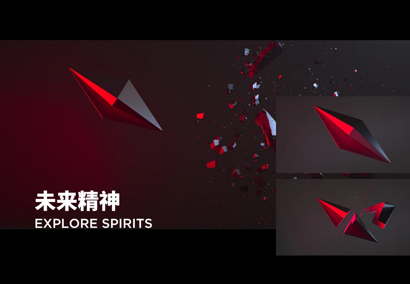 将“剖面”作为“内里/内涵”的象征,剖面发光作为“内涵外化”的表现方式;不同几何体展现的不同剖面,体现探索精神的不同面向。为后续的“立”做基础。同时,光的意向一直是希望、未来的符号想象,与周围的黑暗场域形成对照,产生视觉冲击。
