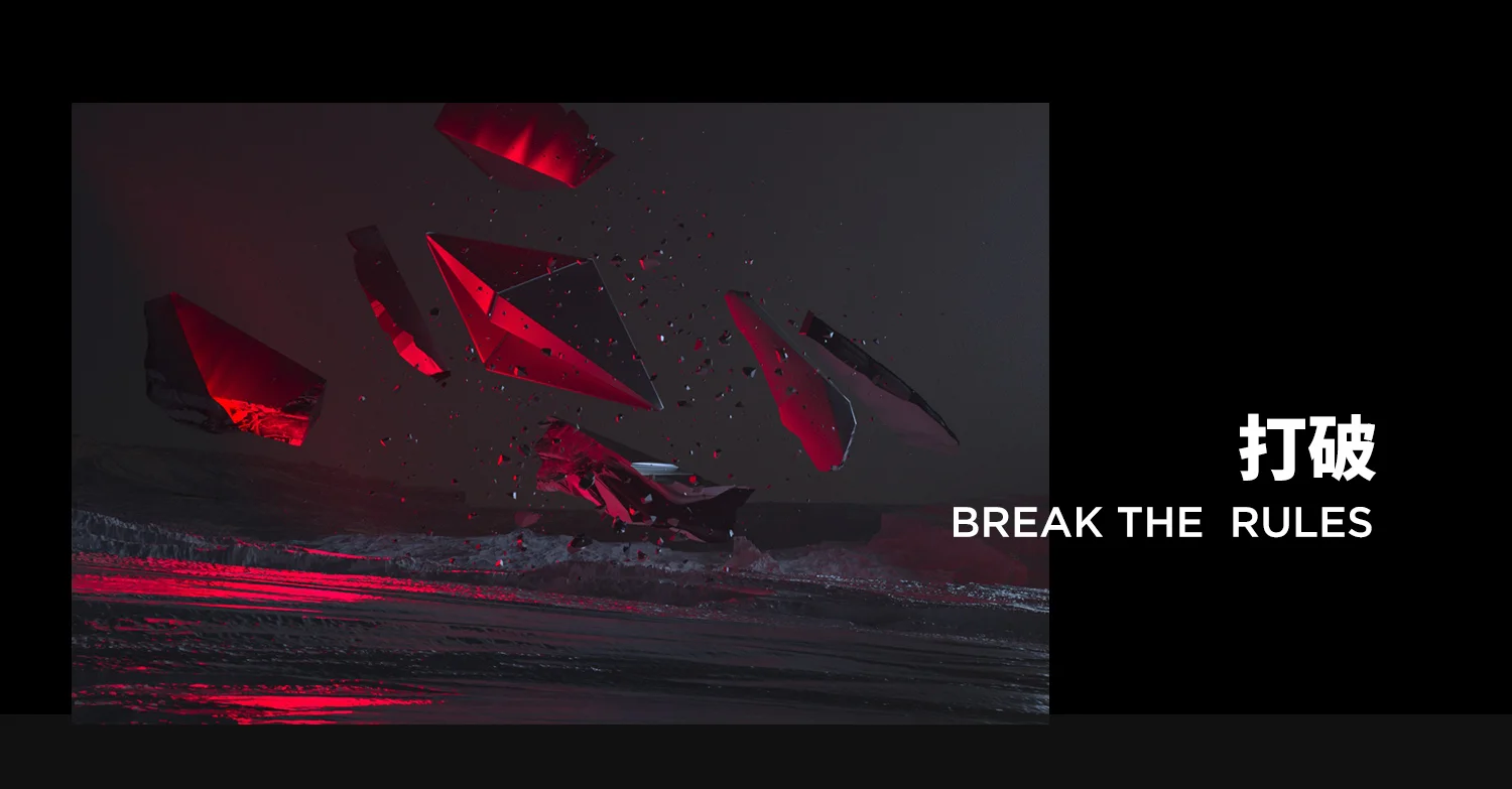 将“不破不立”的笔画做拆解,并以笔画作为剖面原型,形成更具有现代造型的菱体造型。灵感采自水滴飞行器,寄托以最坚固的、来自未来的、神秘的科技与思想。为此,在字体设计过程中,就需要考虑每个笔画的走向与体量,避免在后期形成菱体的时候产生不够优美的造型。