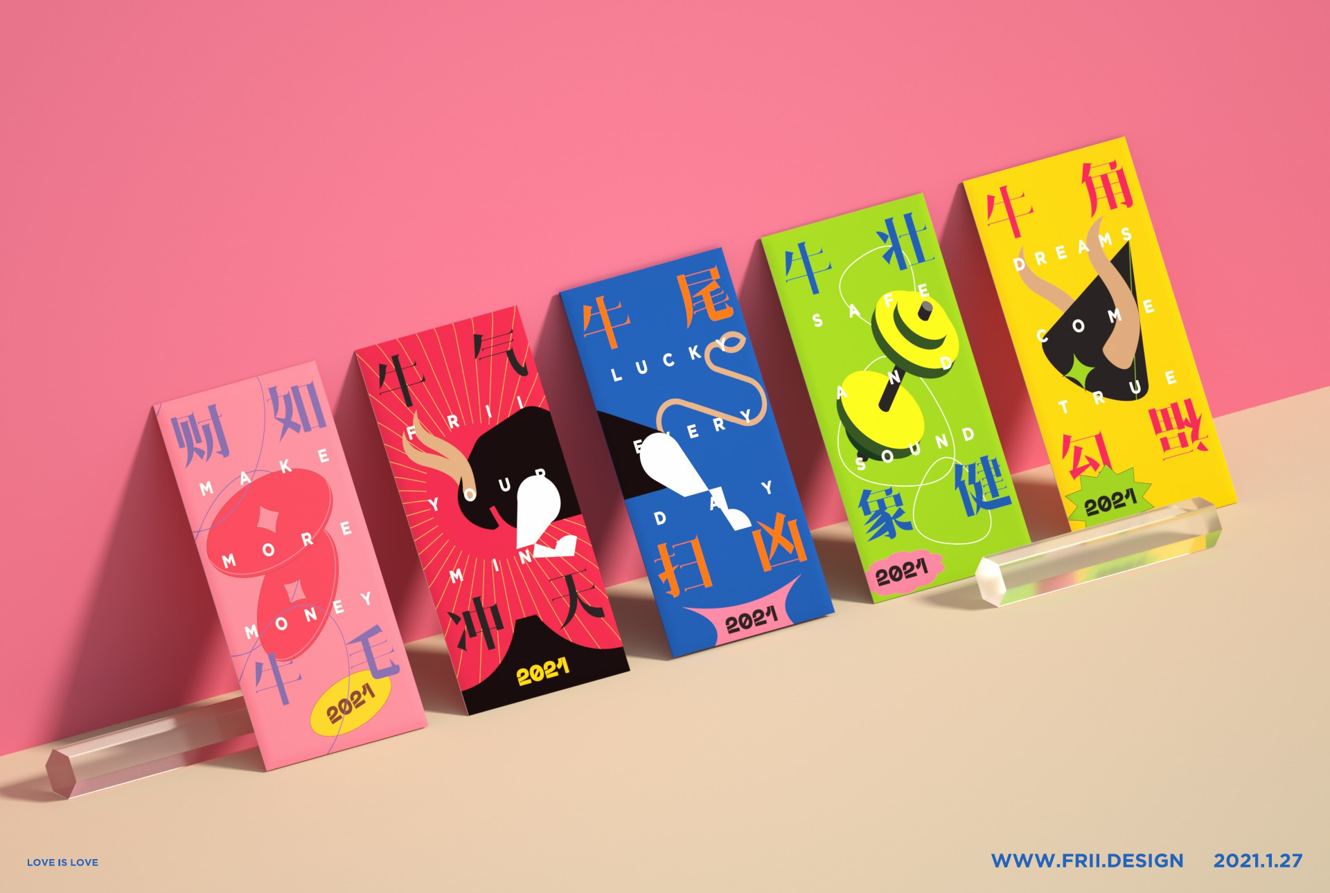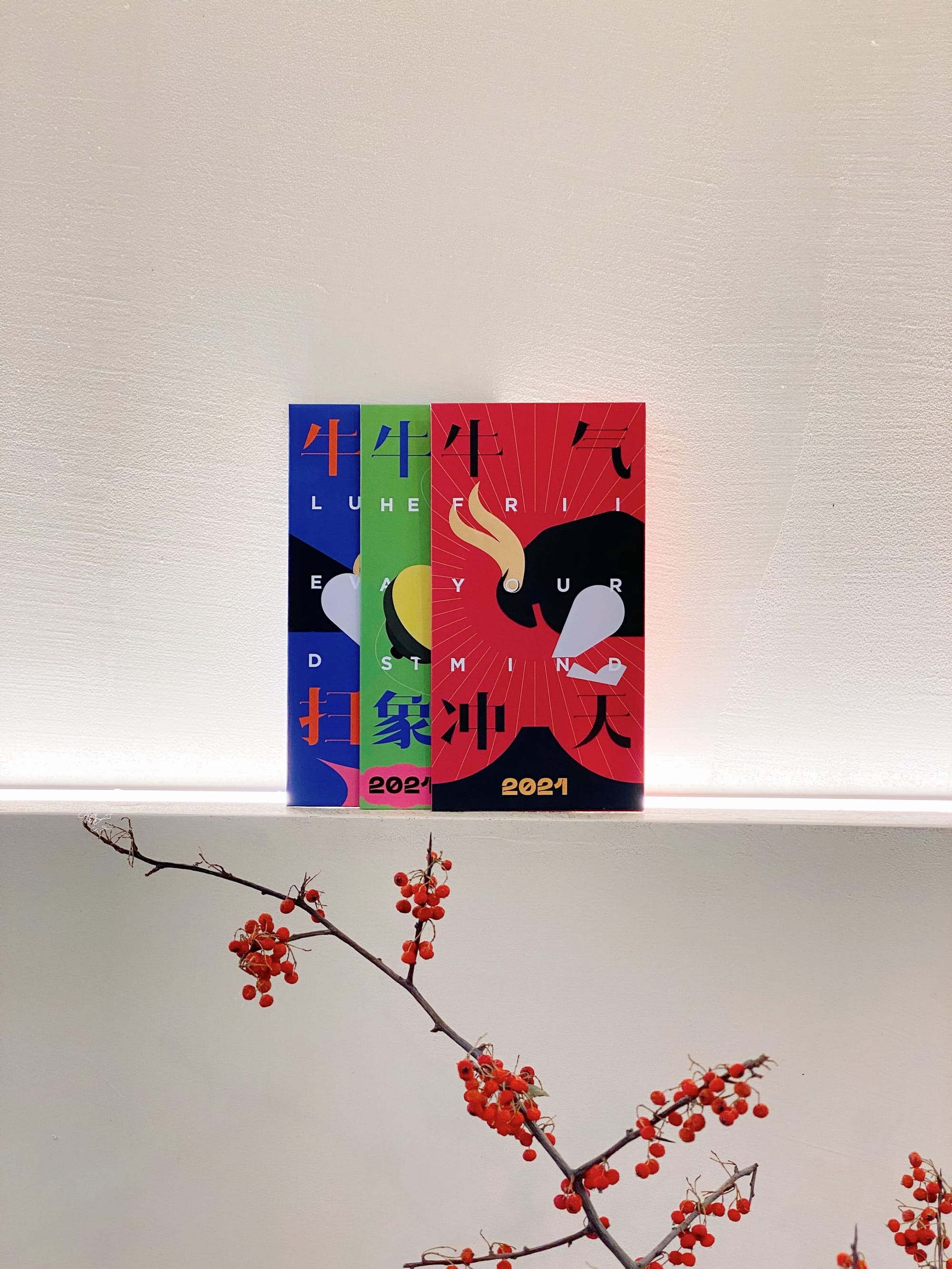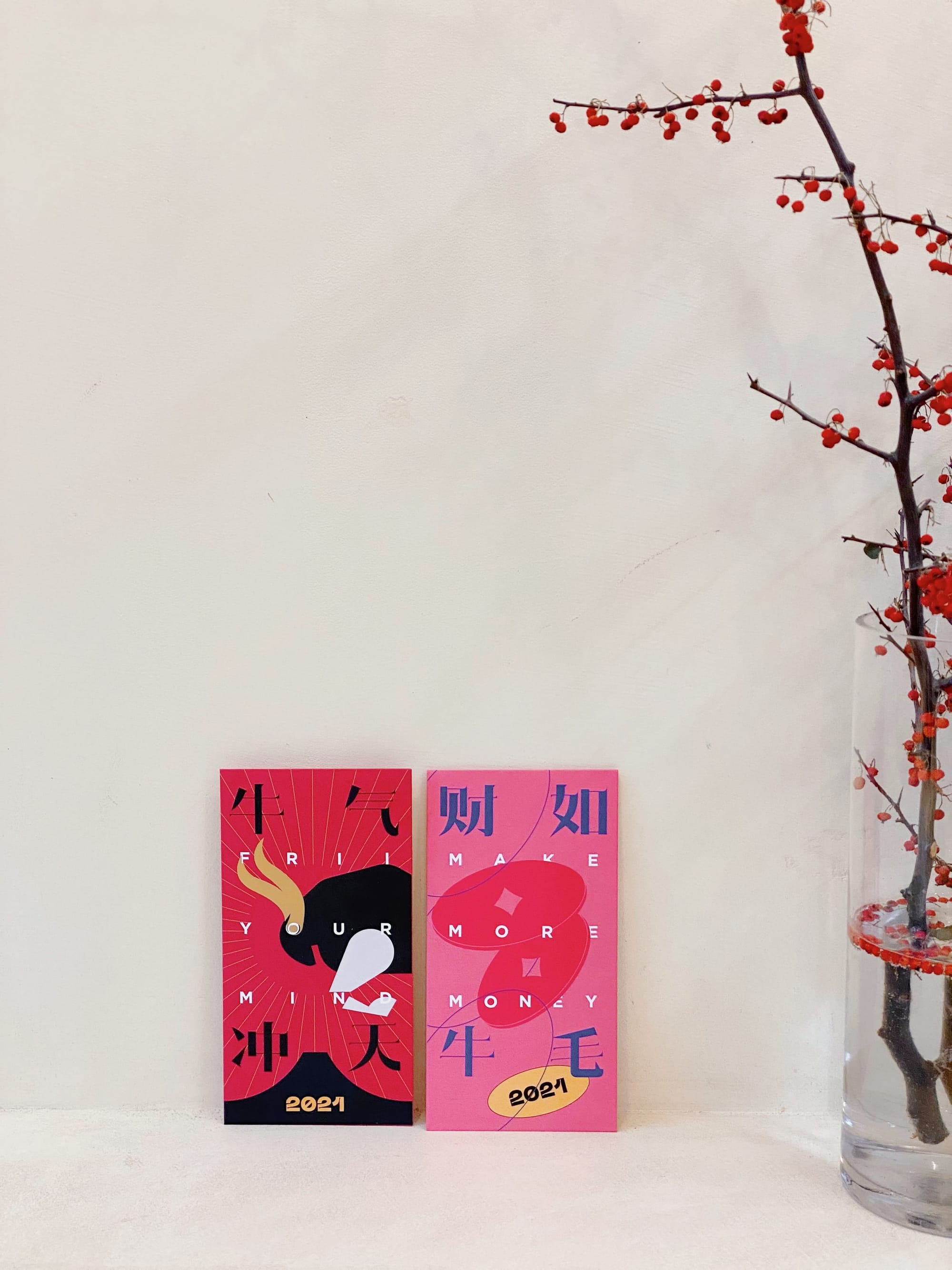 首先我希望拓宽红包的定义。形式上,抛弃千篇一律的红色样式,将Pocket定义为吉利包,幸运包。不过分追究字面上的“红”,跳出框架。从传统牛年出发,自然而然地把“牛”作为整套概念的主线。