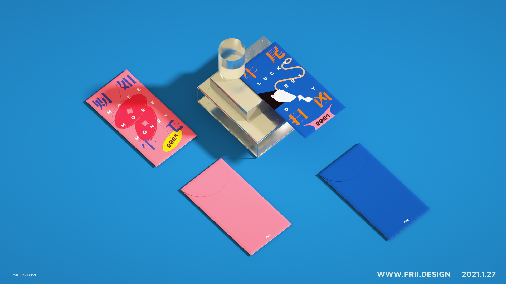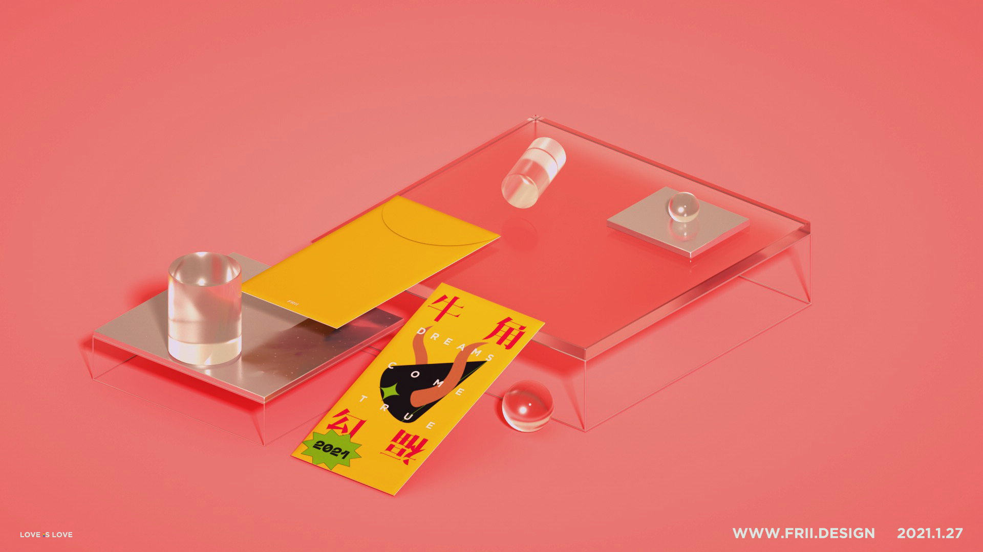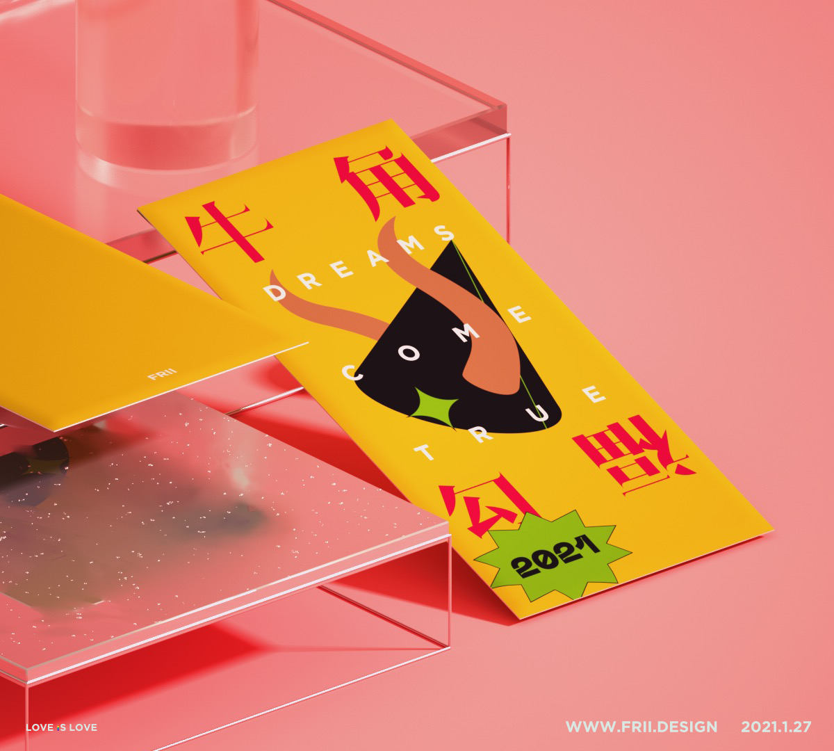 首先我希望拓宽红包的定义。形式上,抛弃千篇一律的红色样式,将Pocket定义为吉利包,幸运包。不过分追究字面上的“红”,跳出框架。从传统牛年出发,自然而然地把“牛”作为整套概念的主线。
