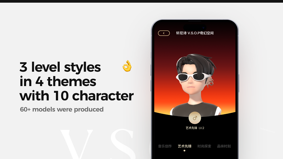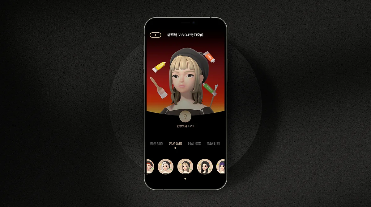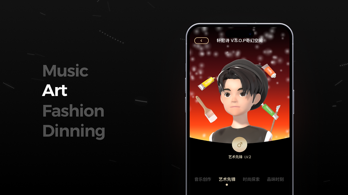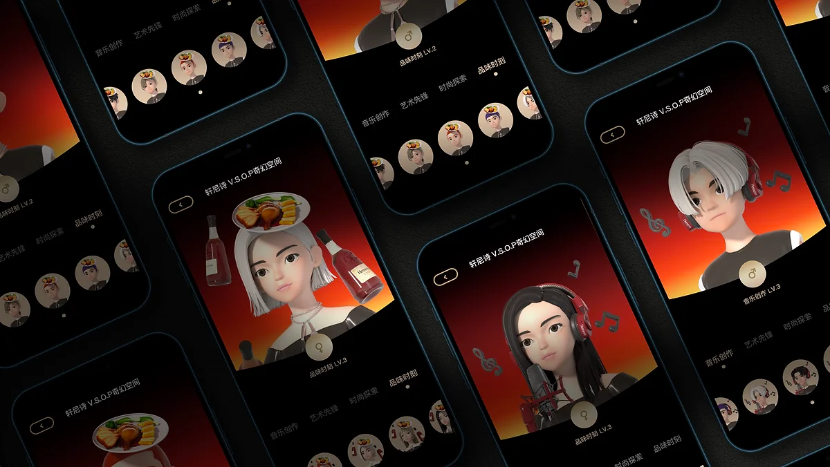 轩尼诗奇幻空间里面有很多板块,包含了奇幻空间、奇幻派对、轩尼诗挚樽会、以及音乐创作、艺术先锋时尚探索、品味时刻等4个主题的活动内容呈现。该页面上线的时间节点,是为了结合春游音乐节的活动与王嘉尔新歌形成加持,届时客户希望在奇幻空间网页尝试3D人物Avatar。