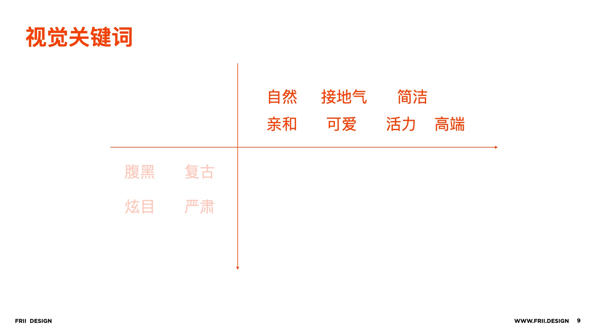 在与客户进行线上视觉工作坊后,我们以【竞品】+【品牌价值观】+【视觉关键词】+【图集】作为视觉定调的四个支点。收敛出设计方向。