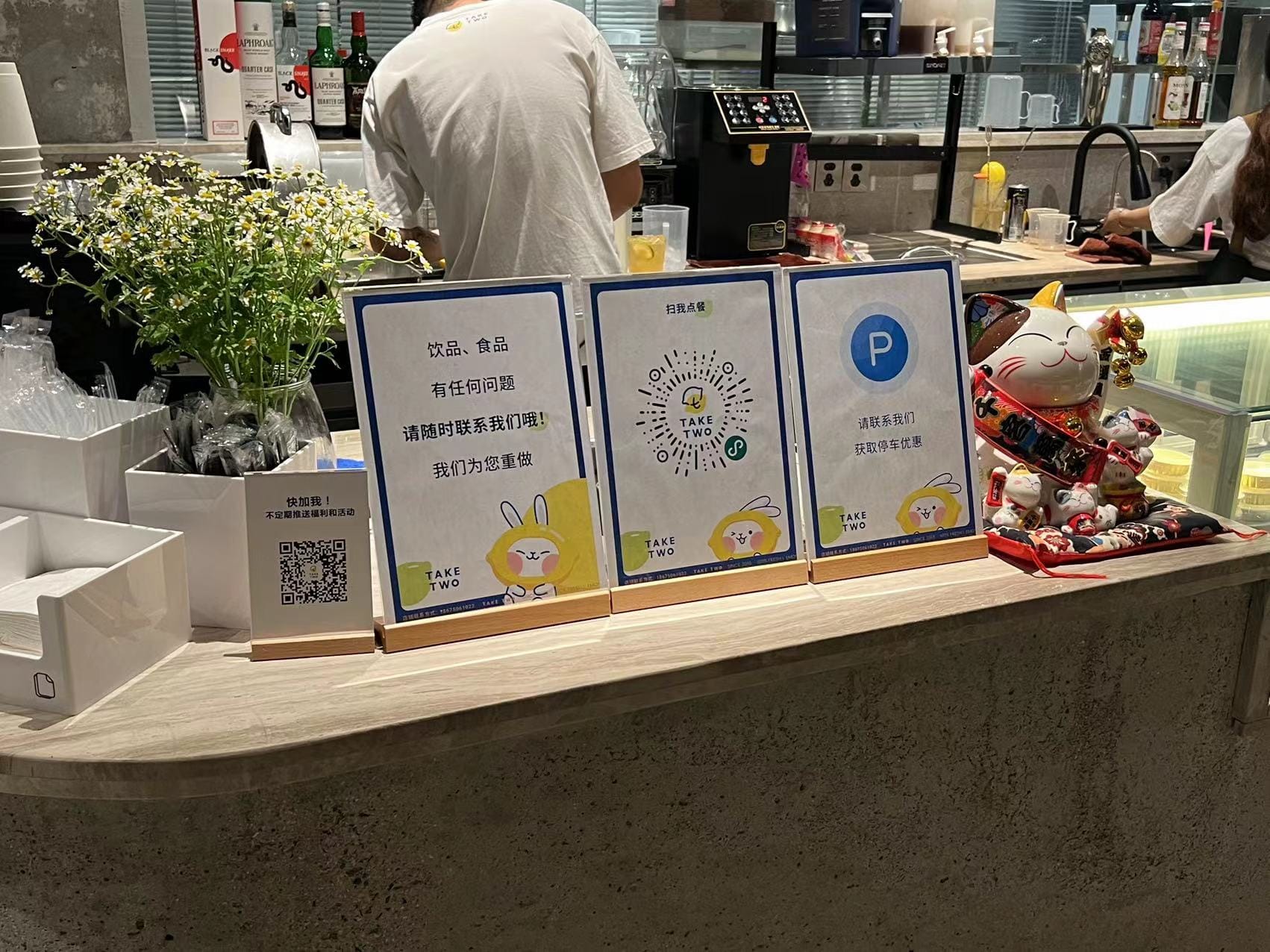 TAKE本身拥有多家连锁店,品牌视觉初期会鼓励各店产生宣传物料。在此过程中,缺少一套统一的视觉规范,使得视觉物料发散、混乱,坏处是难以形成统一的记忆点,消费者产生疑惑,甚至出现“到底哪个是山寨”的发问。