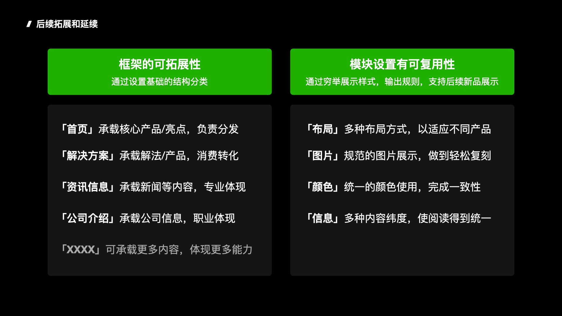 产品:主推产品(页面模块多,包含场景动画);一般产品;解决方案;